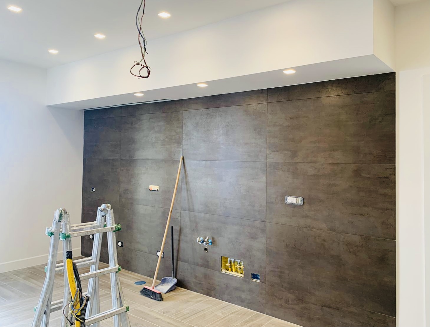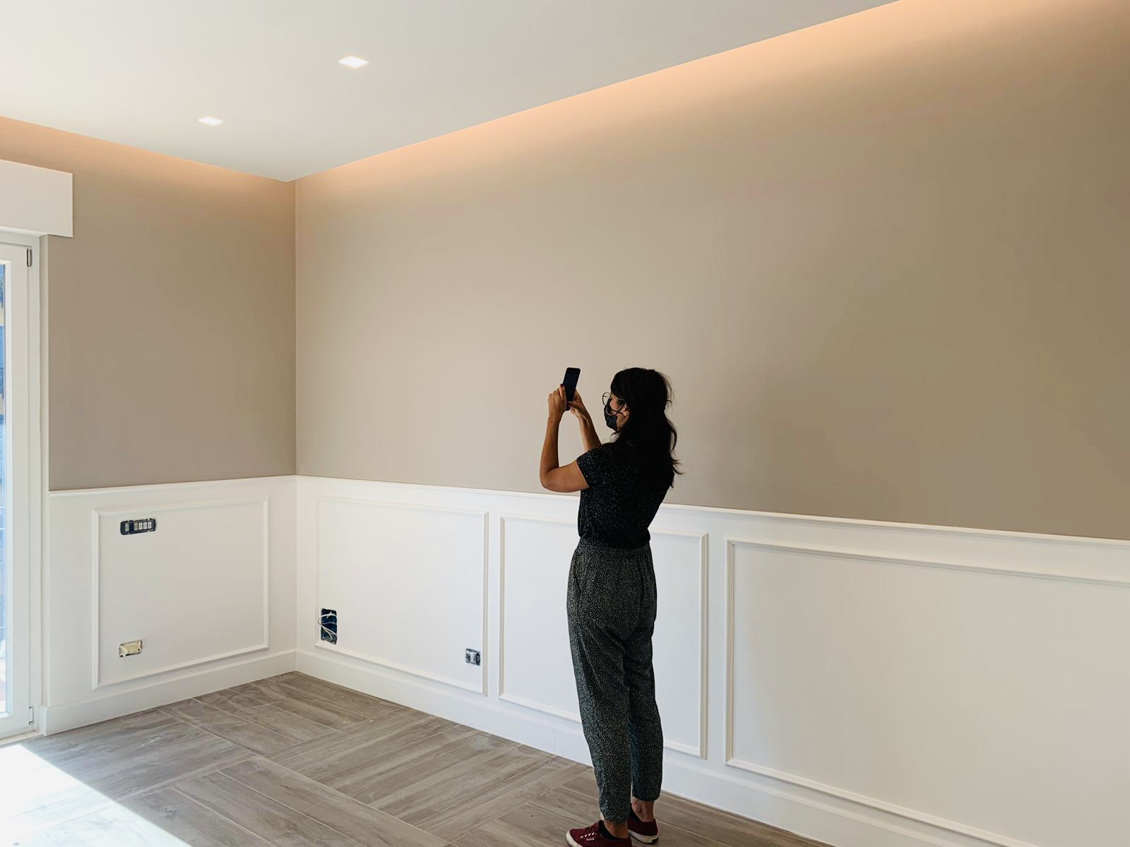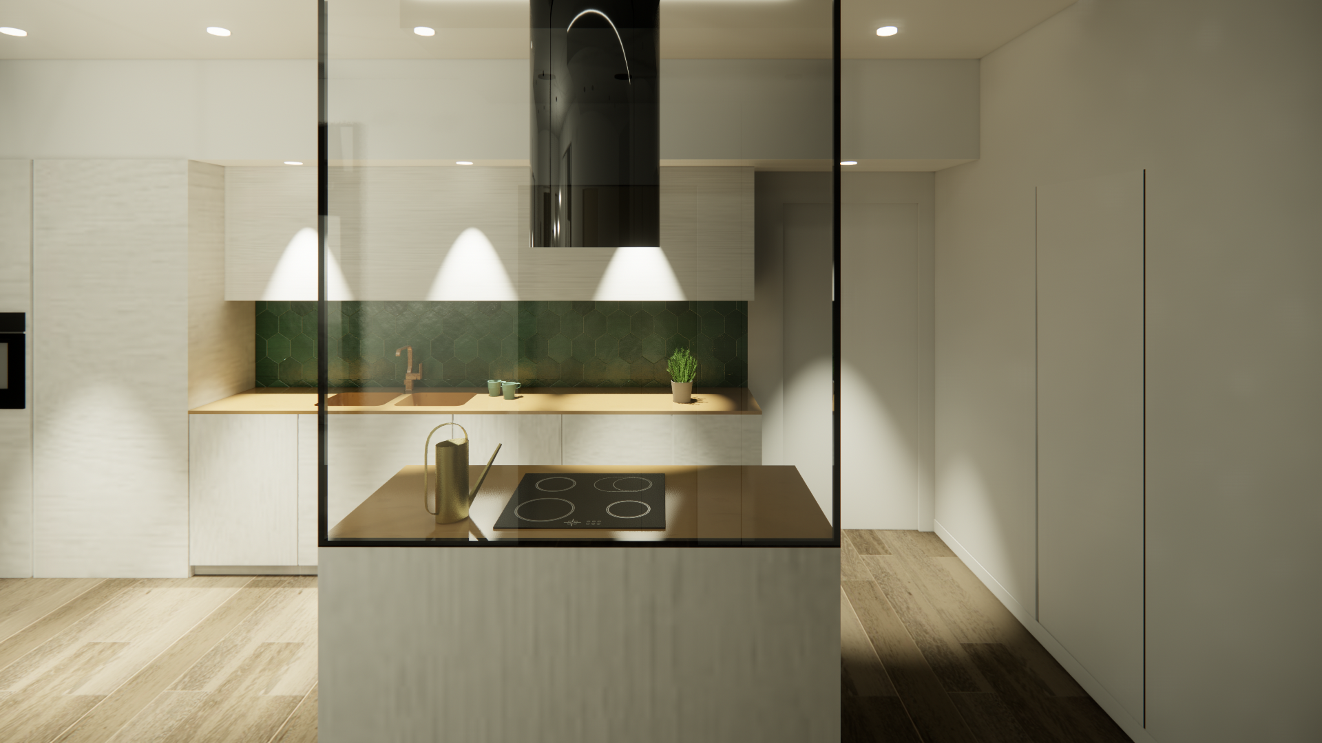Si prevede di rendere l’accesso all’abitazione totalmente aperto tramite un’ampia zona giorno che connette i due balconi presenti sul fronte sud-ovest e nord-est. Lo spazio è fluido ed unificato dall’uso delle finiture e, al tempo stesso, si differenziano le aree grazie al diverso trattamento dei controsoffitti e della relativa illuminazione, caratterizzando così l’ingresso, la cucina con l’area pranzo e il living.